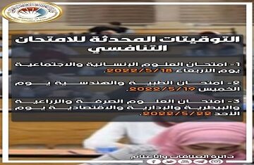 استشعارا للآثار الجوية المستمرة وحرصا على توفير مناخات البيئة الجامعية وظروفها الإيجابية قررت وزارة التعليم العالي والبحث العلمي تأجيل الامتحانات ... المزيد