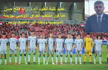 عميد كلية العلوم هنأ فوز منتخب العراق الاولمبي بهزيمة اندونيسيا وتأهله الى أولمبياد باريسZaidمايو 2, 2024