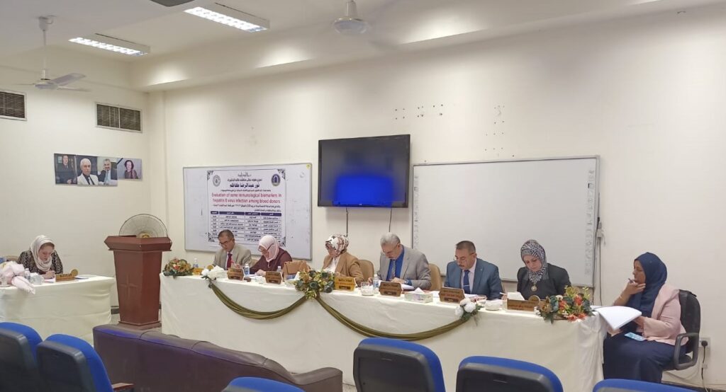 جرت في قسم التقنيات الاحيائية بكلية العلوم جامعة بغداد، مناقشة اطروحة الدكتوراه الموسومة “تقييم بعض المتغيرات المناعية والجزيئية في التهاب الكبد الفايروسي نوع B بين متبرعي الدم العراقيين” للطالبة نور عبد الرضا كاظم واشراف كل من الاستاذة المساعدة الدكتورة شيماء رزاق ابراهيم و الخبير الدكتور كريم مؤمن ليلو .