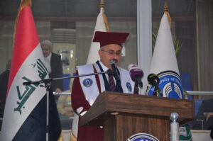 تلا ذلك كلمة رئيس جامعة بغداد الاستاذ الدكتور منير حميد السعدي الذي اكد في كلمته أن شعار التخرج لهذا العام الدراسي يحمل في طياته من اجل بناء الاوطان بالعلم والمعرفة بتظافر جهود المئات من الأساتذة والموظفين الذين قضى كثيرون منهم جلّ حياتهم في خدمة الجامعة وطلبتها، مستعرضا منجزات جامعة بغداد وهي ترتقي التصانيف العالمية المعروفة، وخطفت الاضواء في التصنيفات العربية والمحلية متسنمة المركز الاول، فضلا عن العى مستوى للنشر في المستوعبات العالمية وافتتاح عدد من الاقسام والتخصصات العلمية وغيرها من المنجزات.. وهنىء الدكتور السعدي الطلبة الخريجين قائلاً “ها أنتم تقطفون اليوم ثمار سنوات من العمل الجادّ على مقاعد الدراسة، فهنيئا لكم ما صنعت أيديكم وطوبى لكم ولذويكم تخرجكم وانتم مقبلون لمستقبل جديد تملئونه بما تعلمتم، فنحن نقدر لكم تعبكم وجهدكم في سبيل طلب العلم وسعيكم ومثابرتكم لتحقيق حلمكم الذي طالما راودكم الأمل في تحقيقه وما كان ليكون دون توفيق من الله”.