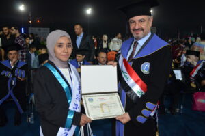 شاركت كلية العلوم متمثلة بعميدها الاستاذ الدكتور عبد الكريم القزاز واعضاء مجلس الكلية وطلبتها وتدريسييها، في حفل التخرج المركزي للعام الدراسي 2021-2022 الدورة 65 التي حملت شعار “بالعلم تبنى الاوطان” والذي اقيم في حدائق كلية التربية البدنية وعلوم الرياضة، بحضور وزير التعليم العالي والبحث العلمي الدكتور نعيم العبودي ورعايته وبمشاركة أكاديمية كبيرة، الى جانب رؤساء عدد من الجامعات وعمداء الكليات، وعددا من المسؤولين واصحاب القرار.