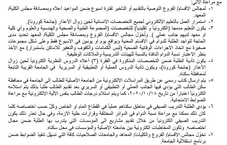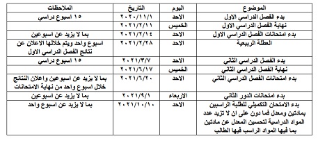 التقويم الجامعي للدراسة الاولية للسنة الدراسية 2020-2021