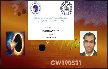 نظم قسم الفلك والفضاء بالتعاون مع وحدتي ابن سينا للتعليم الالكتروني والتعليم المستمر في كلية العلاوم بجامعة بغداد محاضرة علمية افتراضية بعنوان “الحدث الفلكي GW190521” بحضور تدريسيين وباحثين وطلبة متخصصين في علمي الفلك والفضاء والفيزياء .