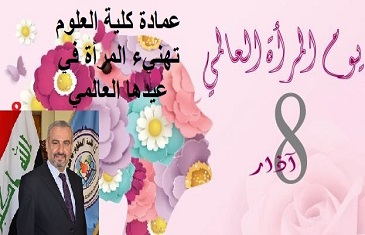 هنأ عميد كلية العلوم في جامعة بغداد الاستاذ الدكتور عبد الكريم القزاز، طالبات الكلية وتدريسياتها وموظفاتها لمناسبة ذكرى يوم المرأة العالمي الذي يصادف في الثامن من اذار كل عام وذلك تثميناً للدور الذي تؤديه في مجتمعها، وهي تاخذ مكانتها بوصفها التدريسية، والسياسية، والطبيبة، والمهندسة، والإدارية، والعاملة في مجالات خدمة المجتمع كافة .