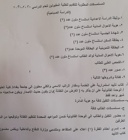 جامعة بغداد و كلية العلوم تعلنان عبر مواقعها الرسمية الية تسجيل الطالب الالكتروني والاقسام العلمية المتاحة والمستمسكات المطلوبة للتقديم