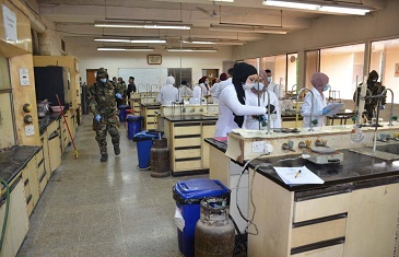 فرق الدفاع المدني تعفر مختبرات كلية العلوم وتقف على اجراءات السلامة وخزن المواد الكيمياوية والبيولوجية