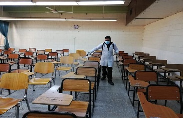 العلوم اليوم … استمرار اجراءات التعفير اليومي للقاعات الدراسية والمكاتب الادارية واروقة الكلية كافة ….