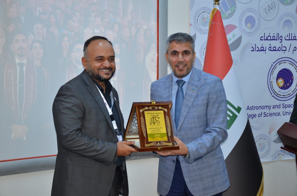 والقى رئيس القسم التوصيات التي خرج بها المؤتمر ومن بينها الدعوة الى تأسيس وكالة فضاء عراقية وضرورة انشاء قبة فلكية تخصصية خاصة بجامعة بغداد مع انشاء مرصد فلكي علمي وتخصصي ملحق بها، والاهتمام بموضوع الرصد الفلكي في القسم مع دعم المختبرات وتطويرها والعمل على فتح ابواب الشراكة مع المؤسسات البحثية والعلمية العالمية.