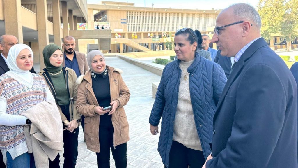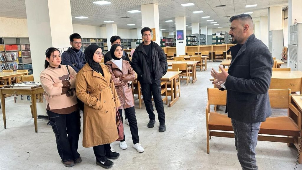 اجرى طلبة المرحلة الاولى في قسم التحسس النائي بكلية العلوم بجامعة بغداد، زيارة علمية الى الامانة العامة للمكتبة المركزية، برفقة عدد من تدريسيي القسم واشرافهم، والتي رافقتها لقائهم برئيس الجامعة الاستاذ الدكتو بهاء كاظم انصاف الذي اشاد بهذه الممارسات الميدانية التي تقوم بها الكلية ولاسيما للطلبة الجدد في الجامعة بما يشجعهم على ارتياد المكتبات واستعارة الكتب والمصادر.