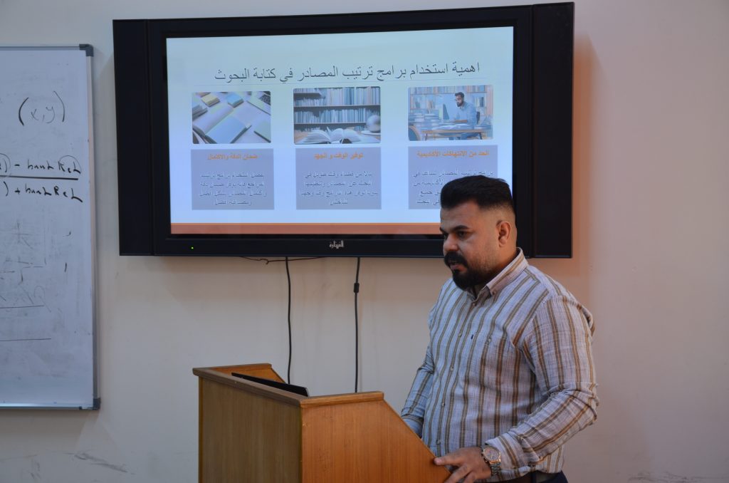 نظمت وحدة الاستشعار عن بعد بالتعاون مع وحدة التعليم المستمر بكلية العلوم جامعة بغداد، محاضرة بعنوان “استخدام برنامج مندلي في ترتيب المصادر” وذلك برعاية عميد الكلية الاستاذ المساعد الدكتور رائد فالح حسن وحضور عدد من طلبة الدراسات العليا والباحثين والمعنيين بالكتابة البحثية .