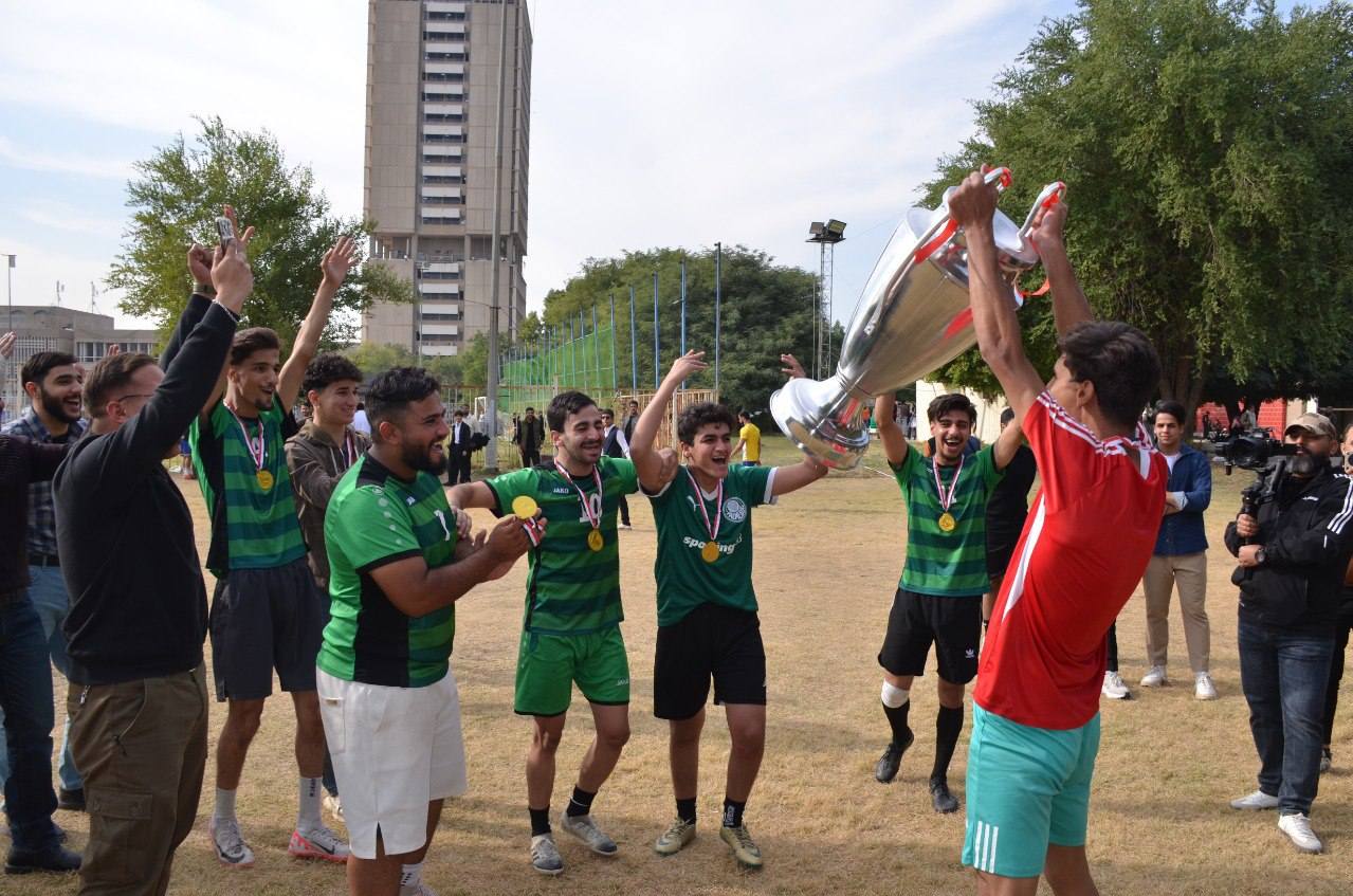 توج فريق قسم التقنيات الإحيائية بلقب بطولة الأقسام العلمية لكرة القدم في كلية العلوم بجامعة بغداد، بعد فوزه المستحق على نظيره فريق قسم الفيزياء في المباراة النهائية التي احتضنها ملعب الكلية.