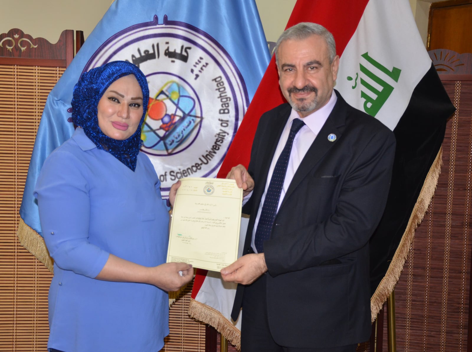 كرم عميد كلية العلوم في جامعة بغداد الاستاذ الدكتور عبد الكريم عبد الرزاق، مديرة وحدة ابن سينا للتعليم الالكتروني السابقة الاستاذة المساعدة الدكتورة لقاء زكي حمادي، لتفانيها بعملها الدؤوب بمدة عملها السابق.