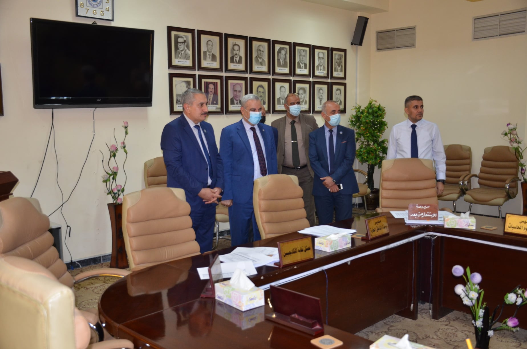 واطلع رئيس الجامعة بصحبة عميد كلية العلوم الاستاذ الدكتور عبد الكريم عبد الرزاق، على قاعة مجلس الكلية وصور عمداء الكلية الذين توالوا على اداراتها منذ التأسيس ولغاية الوقت الحاضر، مبديا ملاحظاته على تصميم قاعة المجلس واهميتها في الجانب الجمالي والتنظيمي .