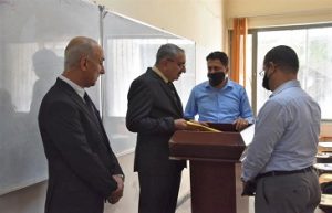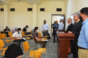 وتفقد رئيس الجامعة برفقة مساعديه العلمي والاداري ومعاوني عميد الكلية، القاعات الامتحانية والاطلاع على الاجراءات الصحية والتباعد الاجتماعي والاستفسار من الطلبة عن طبيعة الاسئلة ، مؤكدا على ضرورة تذليل العقبات والصعاب التي تواجه الطلبة اثناء الامتحانات لضمان نجاحها بالشكل الامثل، كما اثنى على جهود عمادة الكلية واعضاء اللجان المراقبة والامتحانية